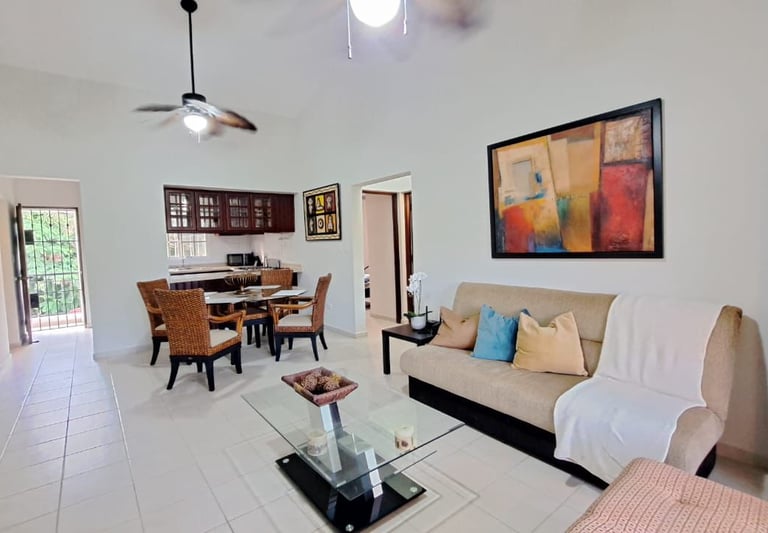 Encantador apartamento ubicado en Villas del Sol II, una comunidad tranquila en el centro de Bávaro. Ideal tanto para vivir como para inversión en alquiler vacacional. Se renta en US$75 diario o US750 mensual.